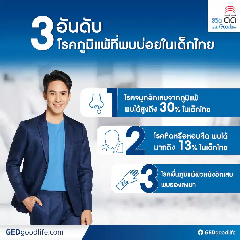 จากสถิติในปัจจุบันพบว่าเด็กไทยเป็นโรคภูมิแพ้เพิ่มมากขึ้น 3-4 เท่าเมื่อเทียบกับ 10 ปีที่ผ่านมา โดยมีปัจจัยต่าง ๆ ที่เกี่ยวข้อง ทั้งการเปลี่ยนแปลงของสภาพแวดล้อม มลภาวะต่าง ๆ และความเป็นเมืองที่มากขึ้น ทั้งยังมีปัจจัยจากพฤติกรรมของเราที่เปลี่ยนแปลงไปด้วย เช่น การขาดการออกกำลังกาย การกินอาหารที่ไม่มีประโยชน์ เด็กกินนมแม่ลดลง และการสูบบุหรี่ ที่มากขึ้นทั้งในผู้ใหญ่และเด็ก