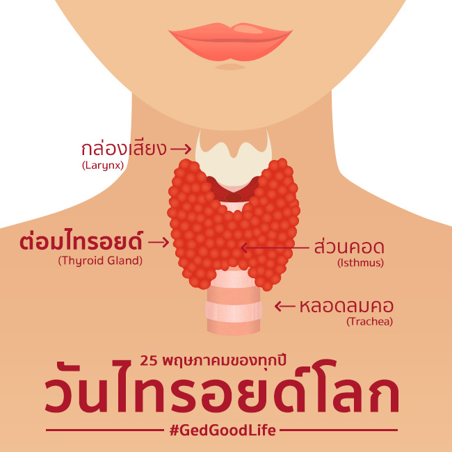 - คอโตขึ้น คลำเจอก้อนบริเวณคอด้านหน้า
