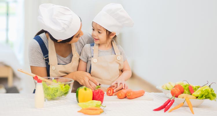 ● ชวนลูกเข้าครัวช่วยทำอาหาร ลองชวนลูกมาสนุก ให้ช่วยทำอาหารไปพร้อมกัน จะช่วยกระตุ้นให้ลูกอยากกินอาหารมากขึ้น เพราะเป็นอาหารที่ตัวเองได้ลงมือทำเอง