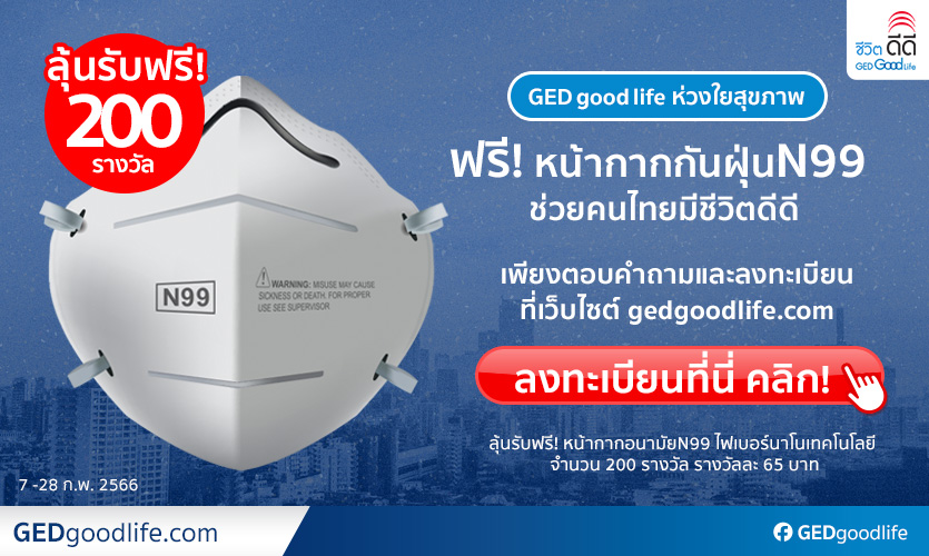 3. ประกาศรายชื่อ ผู้ที่ได้รับรางวัล ภายในวันพฤหัสบดีที่ 2 มีนาคม 2566 เวลา 15.00 น. ผ่านทางเว็บไซต์: www.gedgoodlife.com