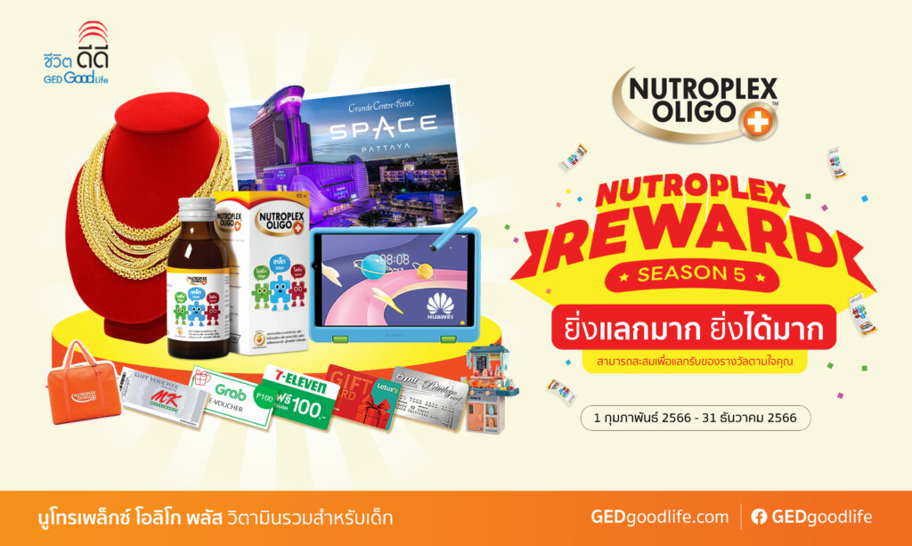 2. สามารถใช้กล่อง Nutroplex Oligo Plus ขนาดใดก็ได้ ในการแลกรับของรางวัล โดยส่งกล่องมาให้ครบตามจำนวน ดังเงื่อนไขในรายการแลกรับของรางวัลที่กล่าวไว้ข้างต้น และสามารถส่งกล่องมาแลกของรางวัลได้ตั้งแต่วันที่ 1 กุมภาพันธ์ 2566 – 31 ธันวาคม 2566 เท่านั้น โดยยึดตามวันที่ประทับตราไปรษณีย์เป็นหลัก
